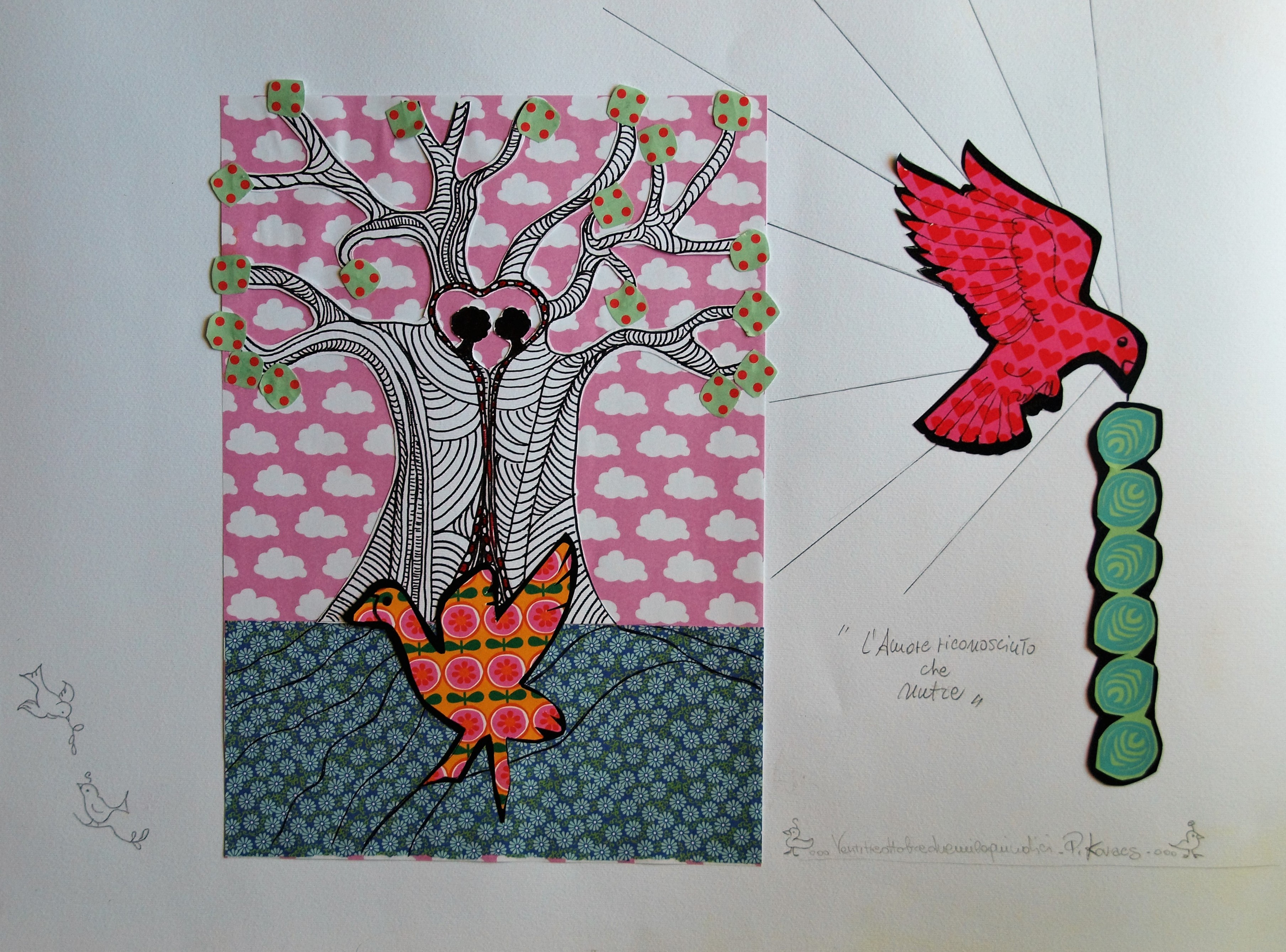 Carta da collage, matita, pennarelli, cartoncino e tanto Amore.